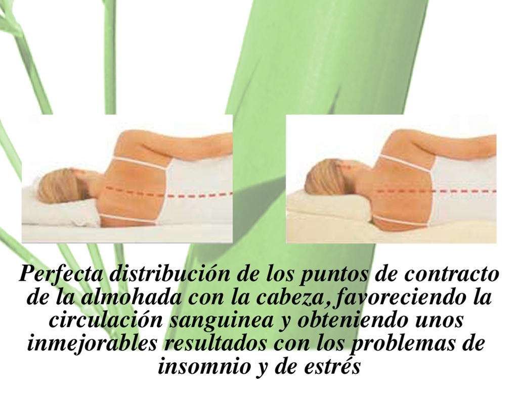 Perfecta distribución de los puntos de contacto de la almohada con la cabeza, favoreciendo la circulación sanguínea e inmejorables resultados con los problemas de insomnio y de estrés.