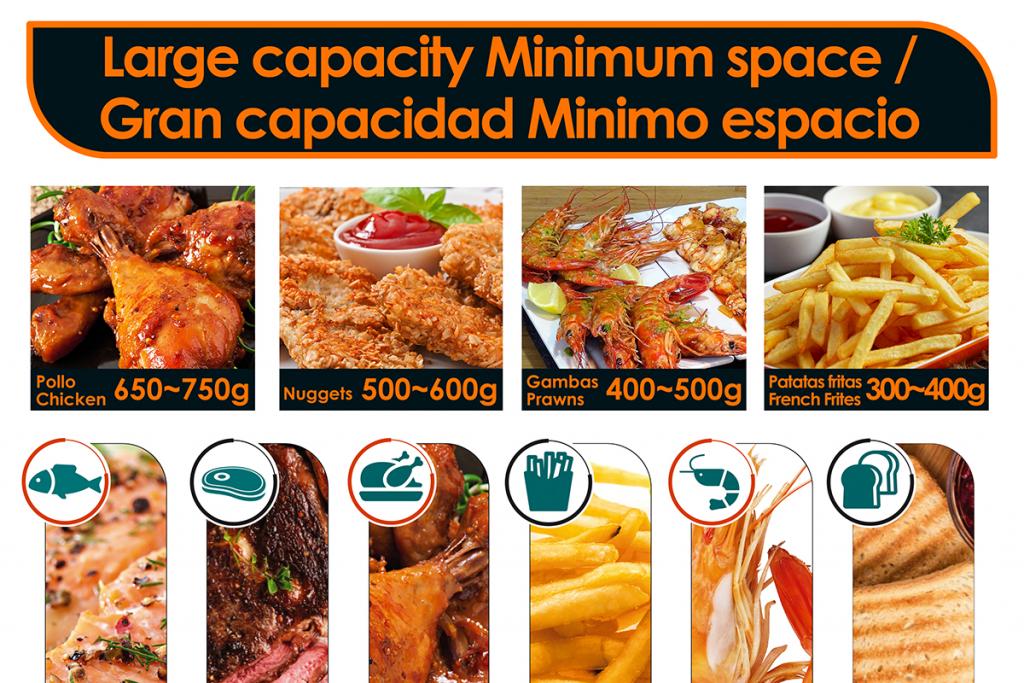 Ideal para cocinar para sus hijos; alitas de pollo crujientes , nuggets , patatas fritas ,aperitivos , carnes , mariscos y verduras y siempre libres de grasa cuidando su alimentacion con esos alimentos que tanto les gustan.