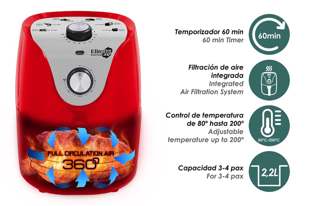 Freidora Dietetica Aire caliente 2,2 EliteFry Evolution