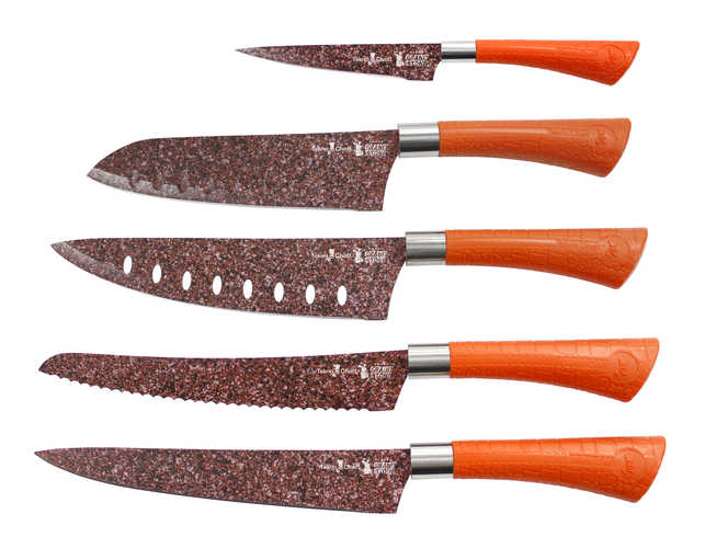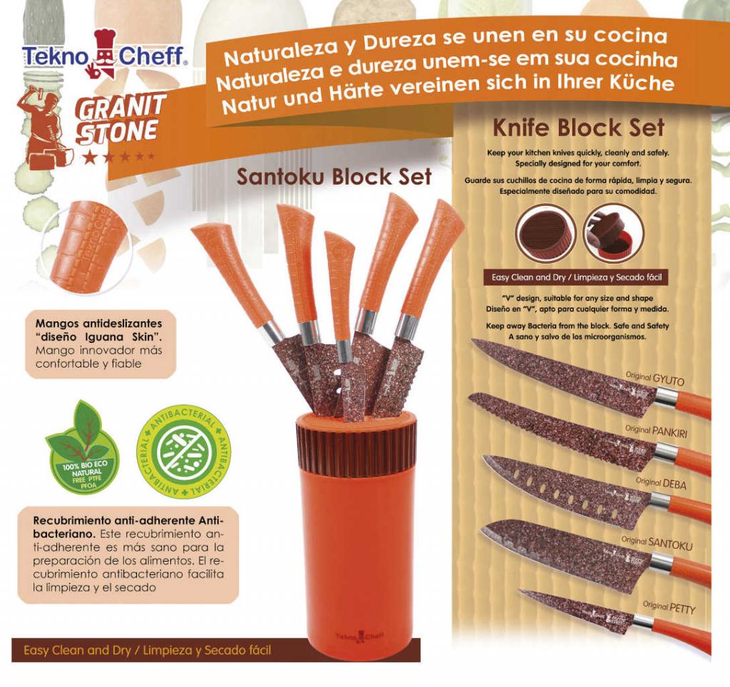 JUEGO 5 CUCHILLOS TEKNO CHEFF SANTOKU BLOCK SET GRANIT STONE