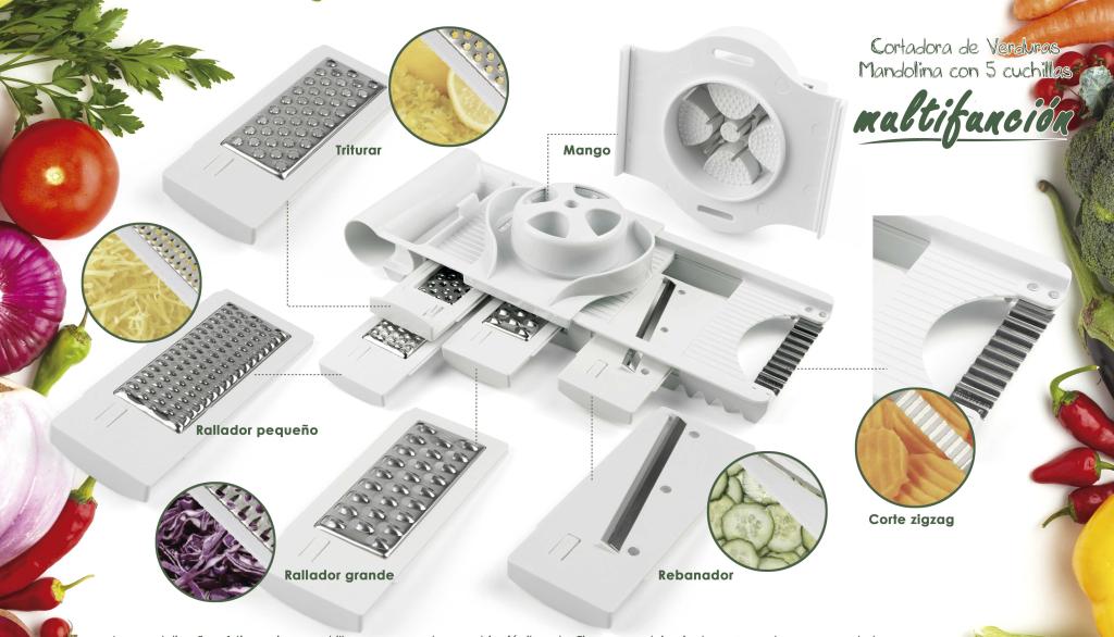 Mandolina con 5 cuchillas multifunción