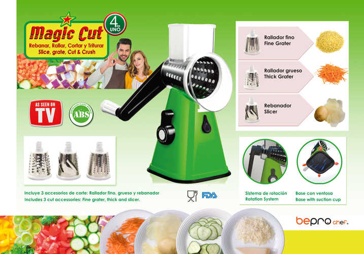 Para rallar: Queso, Calabacin, Pepino, Cebolla, Mantequilla, Col, Huevos, Pan, Chocolate, Ajo, Patata, Especias