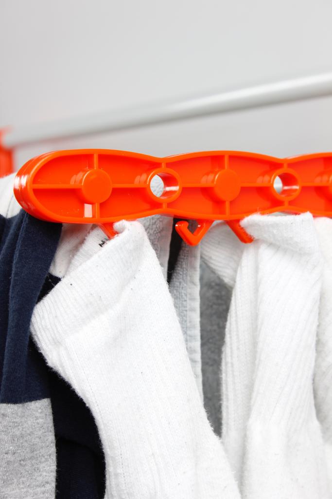 Los soportes de las bandejas tienen soportes que permiten tanto perchas, por los agujeros que tienen, como calcetines, ya que cuentan con pequeños ganchos para ello.